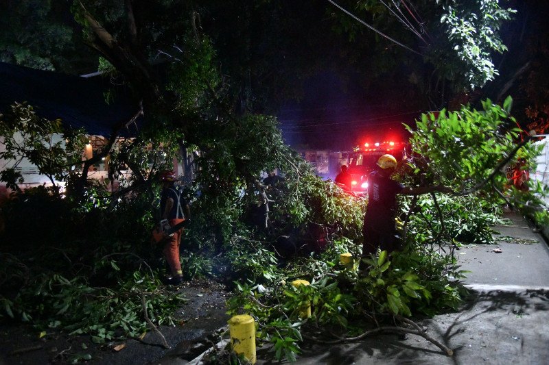 Distintas calles del sector Gascue en el Distrito Nacional se encontraban cerradas por varias horas tras la caída de varios árboles provocados por las fuertes lluvias y vientos registrados la tarde de este lunes.